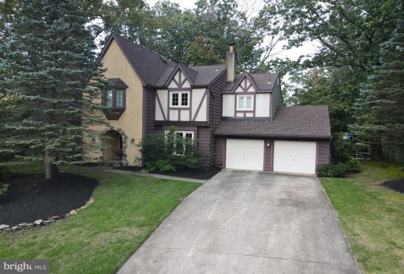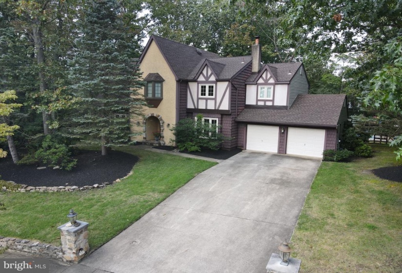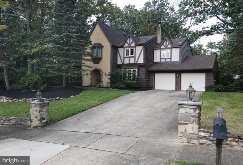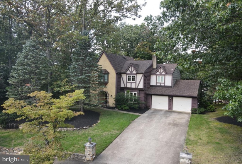 This stunning Tudor home is set on a private landscaped lot that is in excess of 1 acre with resort backyard featuring an in ground pool. Enter through the covered stone porch to the elegant foyer. The freshly painted walls and gray and white ceramic tile and an open staircase will impress you. The gorgeous living room has fresh cream carpet with coordinating walls. The 9 ft ceilings and casement windows enhance this bright room. The formal dining room has crown molding and ceramic tile floors. The dining room can accommodate a very large table as well as serving pieces. The dining room opens to kitchen making entertaining a breeze. The heart of home is the expansive updated kitchen. The natural Cherry cabinets and quartzite counters are highlighted by recessed lighting. The center island is great for meal prep and additional seating. The upgraded stainless appliances include an Electrolux gas stove, Bosch dishwasher and stainless refrigerator. The breakfast area is oversized with plenty of area for a large table as well as a sitting area or space for a bar. The triple French Anderson door has view of your backyard paradise. The kitchen and family room are open to each other. The family room has dramatic vaulted ceiling with distressed beams creating the farmhouse look. The floor to ceiling wood-burning stone fireplace has a slate hearth and will warm you on cold winter nights. The wall of windows and recessed lighting illuminate this great room. The powder room has a pedestal sink, ceramic tile and updated lighting. The primary suite of this home has been totally reconfigured to expand the bath. This luxurious suite is very neutral and has a sitting area. The updated primary bath looks like the Ritz! The white cabinets with quartz tops and polished accessories create the resort look. The custom 24×48 porcelin tiles are featured on the shower surround and the floors of this luxurious bath. The frameless glass shower doors are on rollers and have the polished hardware. There is a dressing or makeup area in this amazing ensuite. The walk in closet is very generously sized. The other 3 bedrooms are all extremely neutral with fresh carpet and are nicely sized. One of the bedrooms has a built in counter so you can work and view the private landscaped grounds. The main bath has been updated with white cabinetry with seamless counters and ceramic flooring and tub surround. The fixtures and lighting in the bath are classic. The second floor laundry is a very convenient. The second floor loft has a great view of the family room and has room to create an office space. The basement is awaiting your finishing touches and has plenty of room for a gym, office, and rec room.The private backyard has is an Oasis! An in-round guinite pool that has just been resurfaced in 2020. The pool area has a large apron for chairs to relax. The classic newer aluminum fence frames the pool area. The brick patio and the grounds are a great place for outdoor entertaining. This is truly a tranquil paradise. The exterior upgrades include roof in 2018, Pella and Anderson windows and doors. The home is absolutely pristine and move in ready. The location of the home is great an easy access to major roads, shopping, Philadelphia and the shore.