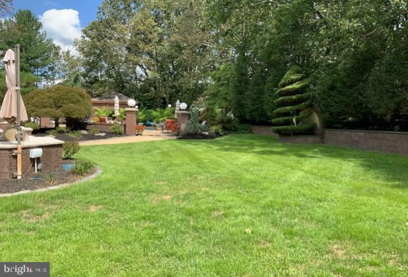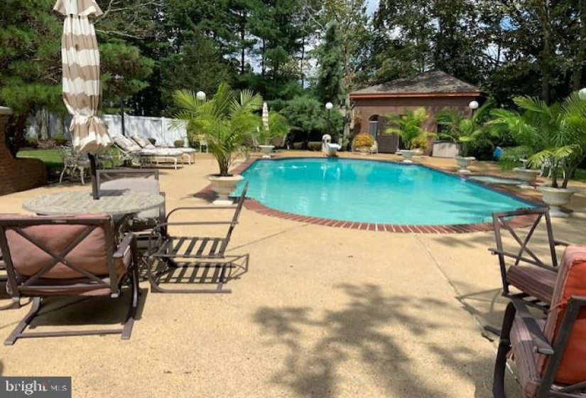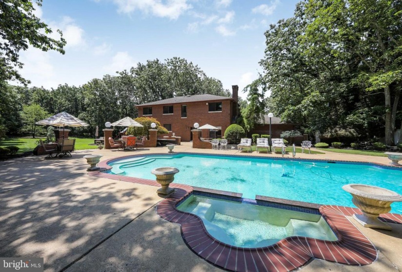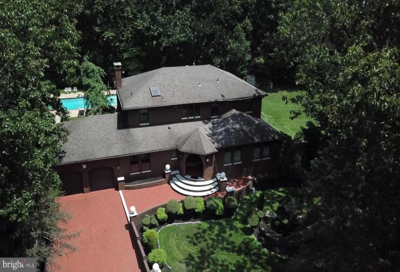 This is a rare gem in Voorhees. Imagine a home built of all brick, on a cul-de-sac and sitting on 1.22 acres. Quality features throughout starting at the custom leaded double door entry that opens to a grand marble foyer with wrought iron railing and dimensional chandelier. To the right is the formal double door entrance to the living room with marble flooring and recessed downlights. The grand dining room has three entrances for entertaining flow. The chef of this home can entertain and cook at the same time as people sit at the island or eating area. Now into the recreation room with hardwood flooring, wall of cabinetry for entertainment unit and a fireplace. Sit and watch the activity or the peace through the double set of sliding doors . Special feature is a very handsome study with built in cabinetry, hardwood flooring and coffered ceiling with recessed downlights. The upper level features a fabulous main bedroom to retreat in. The adjoining resort like en suite is highlighted by a Jazuzzi tub and a separate shower. A wall of closets PLUS a 15 ft walk in (with shoe racks) . Three more spacious bedrooms and a four piece bath complete this level. The basement….this is a true activity center. There is a 13 foot bar sitting on the dance floor. To each side you can make it your own….however you wish to entertain. Now to the back yard….beautiful!! In ground pool with spa, creative patios for conversations and eating. Oh, a pool house too which has a sink/kitchenette, 3 piece bath, changing room and a full wall of closets for storage. Again….remember…this sits on 1.22 acres and you can imagine how you can use this area for recreation. A great place for entertaining. OR…just enjoy the peace and tranquility.