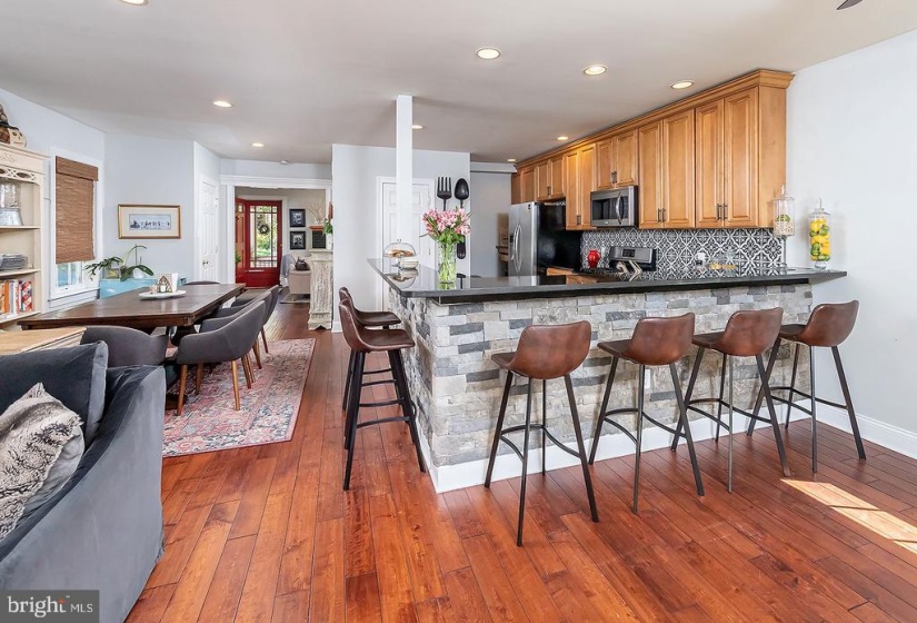NO MORE SHOWINGS Beautifully updated Colonial, on a deep lot, close to town and schools. This 4 Bedroom, 3.5 bath home has great living space. From the relaxing front porch, you enter the living room with wood burning fireplace. Walk through to the great room and there you have a newer kitchen with 42” cabinetry, granite counters with loads of bar seating and stainless steel appliances. Also in this area is a great sized dining area and family area, powder room and coat closet. This is one large room perfect for entertaining or those cozy family gatherings. A large sliding glass doors takes you to the maintenance free deck and large private backyard. On the 2nd level you will find 4 Bedrooms. The large master has a walk in “California Closet” and master bath with double vanity and large stall shower. The additional 3 bedrooms share the hall bath. The partially finished basement has a workout area, laundry room, hang out space and 2 bonus rooms (1 with full sized windows) and a full bath. Don’t forget the storage areas in the basement and in the partially floored attic. 2 zone HVAC, French drain, custom window blinds , outdoor backyard lighting are just a few of the special additions to this home.