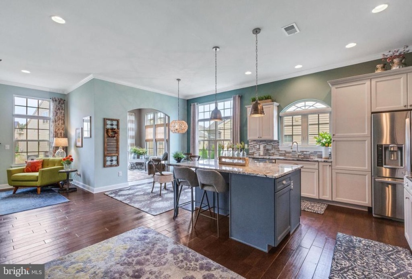 This property is an absolute joy to see. Step in and be welcomed by beautiful natural light that compliment the wood plank flooring, sweeping views, 10ft ceilings in lieu of the standard 9ft, and the elegance and charm this home is enhanced with. Being only 3.5 years old, this is carefree living being sold by a seller who opted for all the bells and whistles. nnFirst stop is a private but cheerful study or sitting room. Complete with plantation style shutters, 4 extra large windows, and high ceilings. Be greeted by a gracious and very accommodating in size, dining room. Sellers added their own creation touches(seller is an architect) to make this space look and feel like an inviting gathering space. Step into the part of the home that feels like a dream with views of a kitchen complete with top of the line finishes, island workspace with sitting area, sunny breakfast room, stylish backsplash, and built in wall oven. The open and cozy family room is complete with a gas fireplace with remote located next to the adorable and best spot to just let the stress melt away-sunroom. Enjoy the fresh air if you exit the sunroom to the rear yard with Trex deck and lower level patio. Another great space to gather and enjoy. The delight will be taken to new heights when you step into the spacious and beautifully decorated primary bedroom. Here you will find coffered ceilings, custom shutters on the Energy Efficent windows, his and her walk in closets, an added bump out for additional room, and another pleasantly roomy place-the master bathroom complete with his and her vanities, generous shower stall with seat, rainfall showerhead, and tile surround. 1st floor also offer an ample guest room with nearby access to full bathroom. nnThe 2nd floor is another delightful place with a large loft styled gathering/family room-perfect for place for a movie night. There is also a full bathroom and another pleasant bedroom. nnTake note of the upgraded light fixtures, abundance of recessed lighting, 2 elliptic openings with rounded corners and legs in lieu of standard square openings, multi zone heating and air systems, 16′ wide garage door with opener & remotes in lieu of (2) 8′ garage doors. There are too many thoughtful upgrades to list! For storage, there are plenty of closet spaces, garage, and a taller then most crawl space easily accessible from inside the home. The crawl space has been carefully constructed with 2 sump pumps and a damproofing along the exterior of the concrete to keep your storage safe and dry. nnSeller looking for a mid January closing