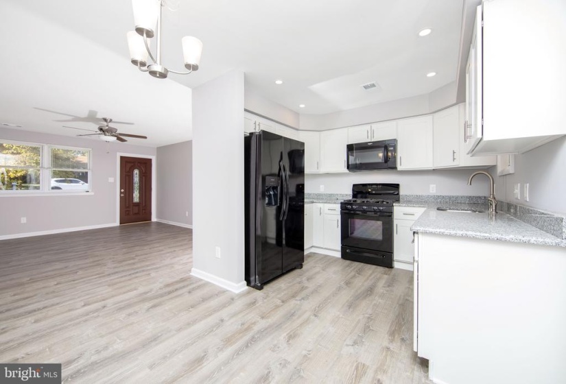 All redone this year. New HVAC being installed next week.nAll new flooring & freshly painted through out the living room, dining room, kitchen, bathroom, hallway & new carpeting in the bedrooms, New white kitchen with granite counter tops, all black appliances. Dining area with sliding doors to large yard with stunning views of the lake . New bathroom- tiled and all redone.n3 good sized bedrooms. nNewer dimensional roof.nLaundry room, large oversized garage, show and sell!!