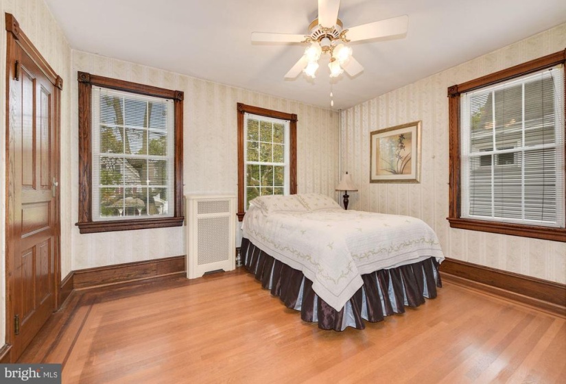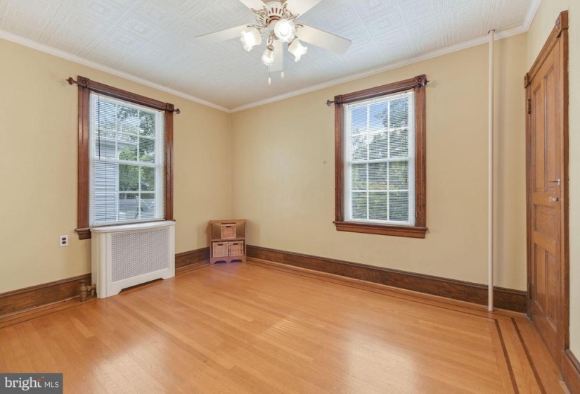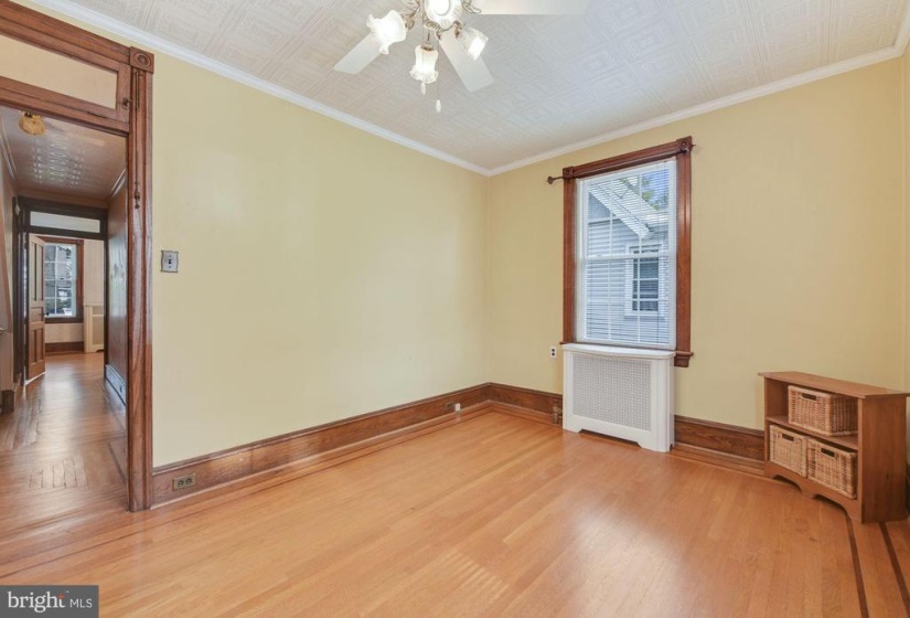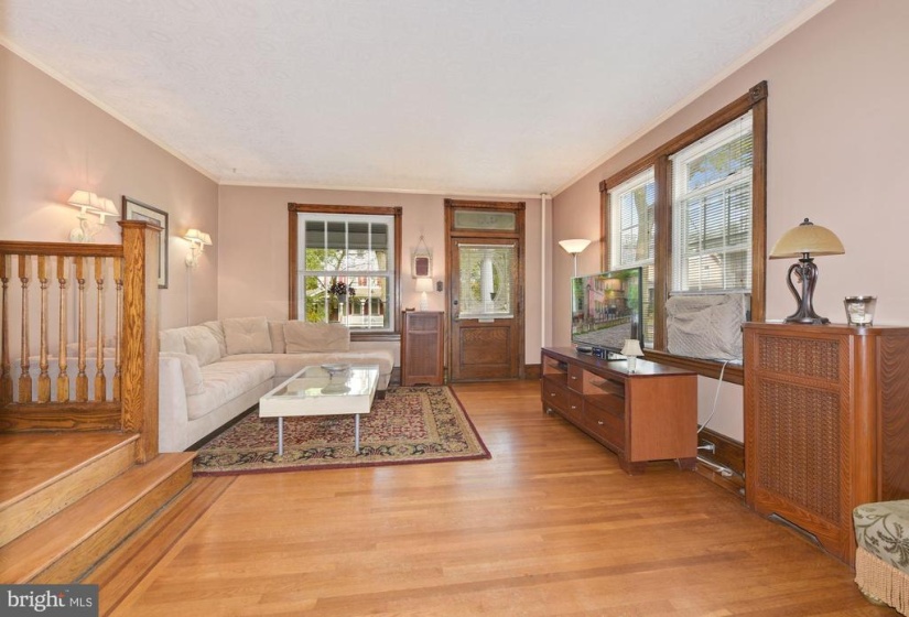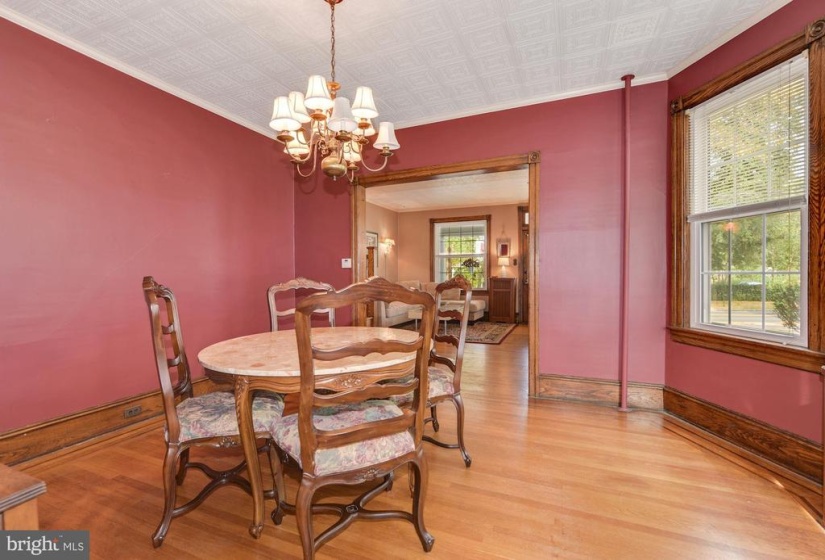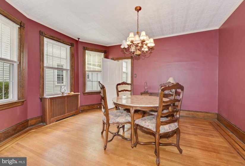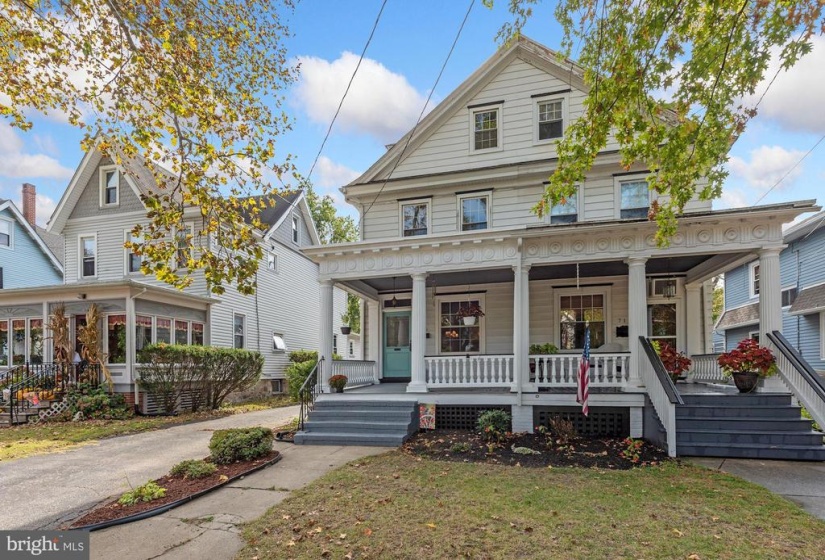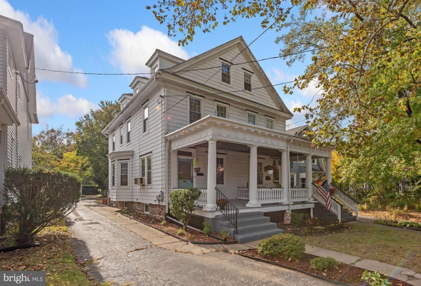 Welcome to this charming twin home with 4 bedrooms and 1.5 baths. This home is unique with 9 ft ceilings, original detailed hardwood floors with the original ornate trim in very good condition, The living room is a generous size leading into a formal dining room with several windows which host plenty of natural light The freshly painted kitchen has both an eat in area as well as a separate cooking space. Off the kitchen, there is a first floor back room that faces the yard that could be used as an office or den. The laundry room is conveniently tucked away on the first floor. nnThe second floor has 2 larger bedrooms with plenty of windows for natural light. There is a full and half bath for busy morning routines. The third floor has 2 additional bedrooms and a very large hall way closet with a cedar closet tucked away for your special items. nnThe outdoor area has a large covered front porch perfect for watching the parade from your porch step. There is a deep, fully fenced yard for gatherings and entertainment purposes. It includes a garage which has both electric and cable hookups to easily convert into your own getaway space for crafts and carpentry work. nnThere is cable in all rooms except one bedroom on the third floor.nnThere is a full basement just awaiting your finishing touches to make an additional living space. Basement includes a pool table in good condition.nnGrade school is Riverton public elementary school and high school is Palmyra Public high school . nnA block and a half from the River Line (Camden to Trenton) or a 20 minute drive to Center City Philadelphia . There is a beautiful walk to the river, close to downtown shops, restaurants, and 2 blocks from the park. This is a must see for the value and charm. Easy to show.