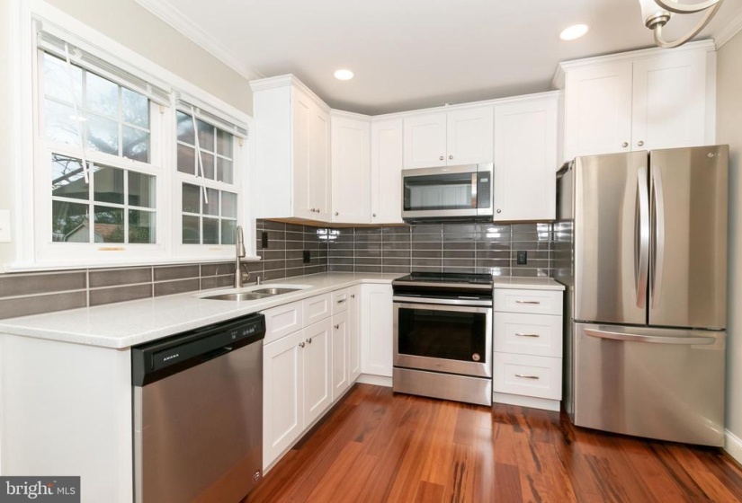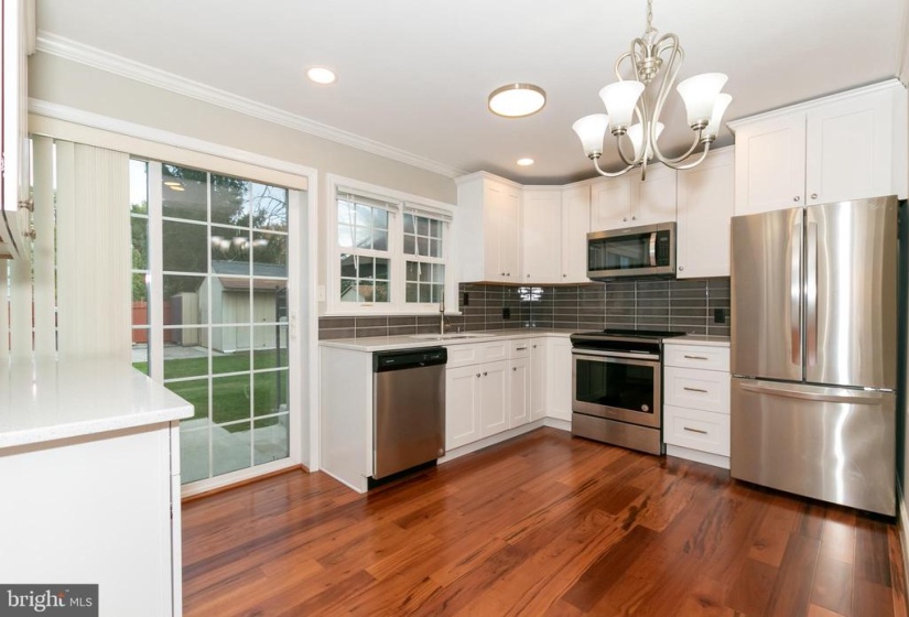 Absolutely Stunning and Move-in Ready 4 Bedroom 2 Full Bath Home in Hamilton! This fabulous turnkey home will not disappoint and has been completely remodeled from top to bottom to every refined detail. As you enter you will be immediately taken away by the brand new hardwoods throughout the main level! Large living room is complimented by a large window allowing for lots of sunny light! Designer kitchen features striking new white cabinetry, all new stainless steel appliances, and gorgeous granite countertops, along with a modern grey glass subway tiled backsplash! Glass sliders off of the kitchen lead you to a large fenced in rear yard, with two hardscaped patios, two large sheds for added storage, and an additional cement patio that lands outside of the rear doors from the kitchen! Lots of areas to enjoy entertaining guests and relaxing on those fall evenings! Two bedrooms are featured on the main level and neighbor a remodeled full bath that features granite vanity, new mirror, plank tile flooring, and modern tub in ceramics with new glass sliders! New staircase just installed leads you to the second level which features a massive third bedroom with recessed lighting, and is complimented with a large walk-in cedar closet! Completely finished lower level awaits with a large Fourth bedroom with a huge walk-in closet and neighbors an expanded family room with ceramic flooring! Brand new washer and dryer are also located in the lower level along with a second full bath that has new vanity, tub and shower surround and newly tiled in ceramics. Home features new gas furnace and Central Air, new plumbing and sewer line, new electric panel, and new roof installed in 2021. The oversized one car garage with high ceilings allows side entry into the home which is truly an added bonus to this beautifully remodeled home! Home is centrally located in Hamilton Twp Schools, with easy access to the Train Station and all major throughways!
