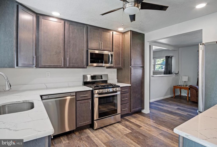 Check out this AWESOME, COMPLETELY RENOVATED, 4 bedroom, 1.5 bathroom Ranch Home in Pine Hill. Done to perfection, with a brand-new kitchen and new bathrooms, this home is move-in ready! From the street, this home has lovely curb appeal with a lush green lawn, neutral siding, a cute front porch for you to enjoy, and a backdrop of mature shade trees. Stepping inside the home, the living room is bright with natural light from the large bay window. Wood-look flooring greets you and flows throughout the home. The dining room is open to the living room for ease of entertaining and socializing. The dining room has a floor-to-ceiling brick fireplace with a mantle and built-in shelving, which will create a lovely ambiance for your dinner parties! There’s a bonus room off of the dining room which has a powder room for your convenience. The kitchen is stunning with all new stainless steel appliances, new cabinets, beautiful white quartz countertops, recessed lighting, and a ceiling fan. You will love cooking and entertaining in this fantastic kitchen! Off the kitchen is the sunroom, which has a beautiful view of the backyard. This will be a perfect spot to relax and enjoy your favorite beverage or read a book. It has sliding glass doors out to the deck. The laundry room is also next to the kitchen which will allow you to multitask with ease. Restful nights of sleep await you in one of the four bedrooms of the home. The hall bathroom has also been updated and features a new vanity and stylish mirror and lighting fixture. Outside, you’ll love the backyard and will spend many days and nights outside on your deck, grilling and chilling. Let the kiddos and the pups run and play safely, with confidence in the fully fenced backyard. Mature shade trees give desirable shade to the yard, and the fencing gives you all the desired PRIVACY you want! Two sheds in the yard are perfect for storing all of your seasonal items and landscaping equipment and the treehouse is there for the kiddos to have some fun! For your peace of mind, the roof is only 9 years old and has plenty of life left in it. The air conditioner is only 6 months old. A great location, this home is only 3 miles from Shoprite and 9 minutes from all kinds of shopping and dining experiences and the Atlantic City Expressway onramps at Berlin Cross Keys Road. It’s a 31-minute commute to Center City Philadelphia too!
