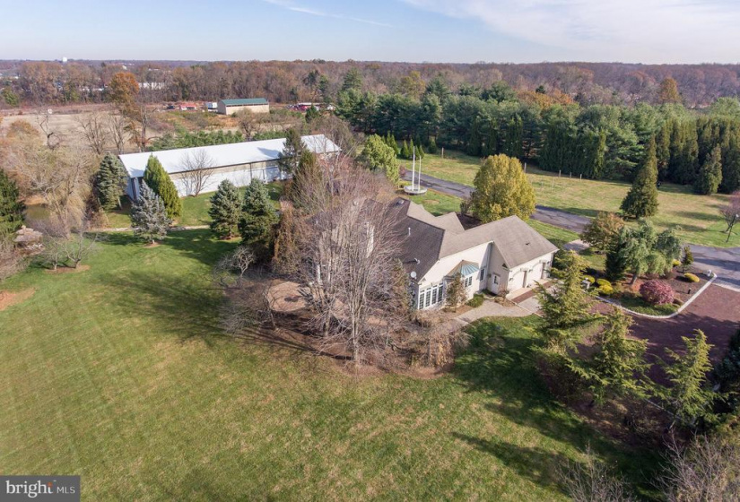 For rent, $365,000 Yearly, NNN Enter via a gated long driveway to this prized property, currently used as a pharmaceutical company’s US liaison. The property comprises of one handsome guest house with high ceilings, lots of windows 3 bedrooms, 3 1/2 bathrooms, 2 kitchens, paver patio, fire pit, 2 car attached garage, Finished basement with wet bar, exercise room, one full bathroom. The French influenced contemporary home is surrounded by mature trees and shrubs which blend this building with the farm. A gazebo and a fish pond soften up the landscaping. A 5,200 sq ft commercial building has been set up as an office, a show room, a conference room with a kitchen. Large warehouse area provides opportunities for storing large vehicles, boats and equipment. There is also a two bedroom apartment with a kitchen, a full bathroom, and laundry atop the office area. With Deep irrigation well, three-phase electric, and abundant parking, this building could also be easily modified to accommodate farm animals. Easy access to points north, south and east via Routes 130 & 295 and NJ Turnpike.