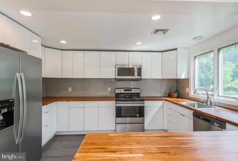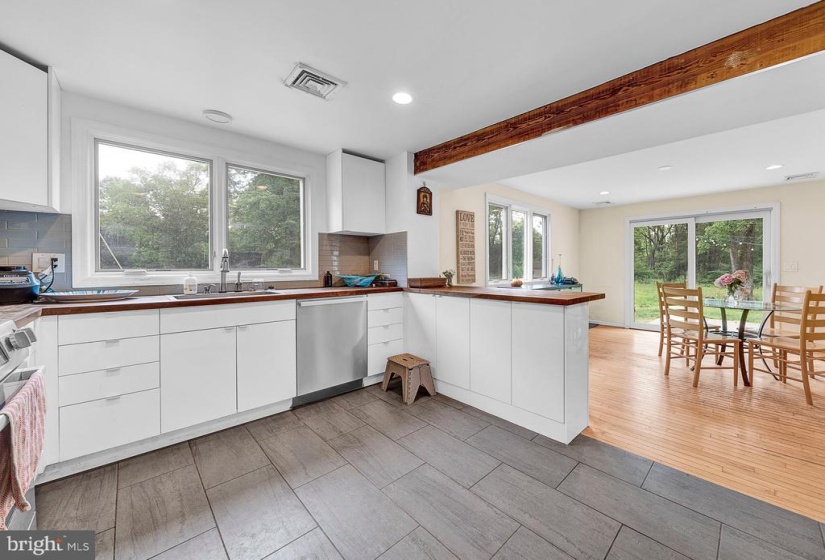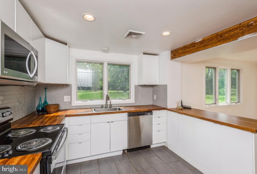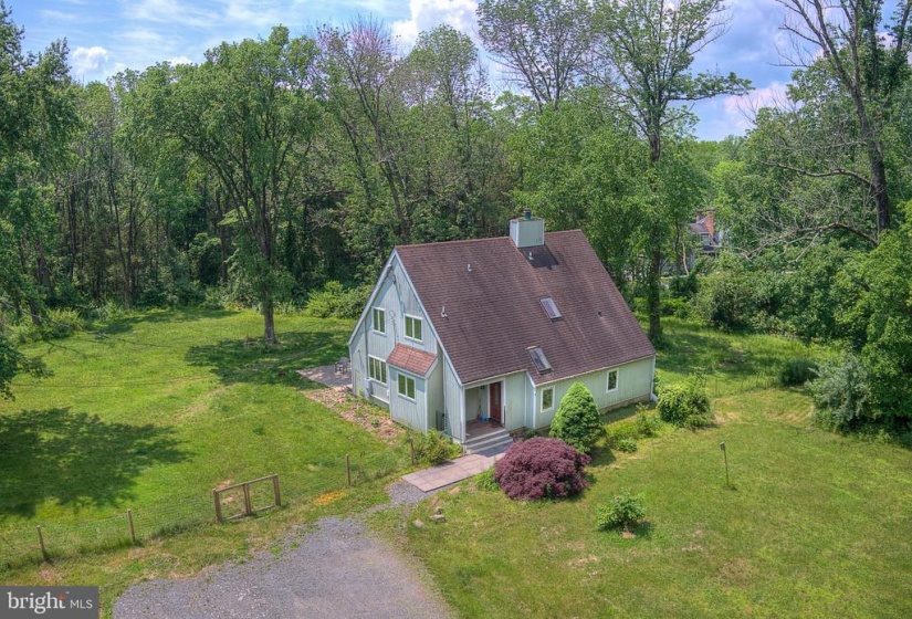 NEWLY REMODELED! Tucked back from the road and secluded behind the natural privacy of a mature treeline, 163 Lambertville Hopewell Road marries the bright, open layout of its contemporary architecture with the rural appeal of its sprawling 2.42 acres of rolling lawns and wooded grounds. Crisp, white walls, hardwood floors and natural wood beams create a neutral color palette that gleams in the natural light from skylights and many large windows, not to mention the recessed lighting throughout. The kitchen is defined by clean lines, finding an elegance in its simplicity, where butcher block countertops contrast beautifully against bright, white cabinets and a stylish tile backsplash, all appliances are new! A large first floor bedroom is a perfect in law suite or a guest room or could be used as a former living room. The primary bedroom has a dramatic vaulted ceiling, a sitting room and a luxurious bath with soaking tub, separate shower, dual vessel sinks and a skylight. Two additional bedrooms share a hall bath. The paver patio is the ideal space for al fresco dining, sitting around the fire pit or taking a break from the daily grind to enjoy a cup of coffee and a good book in your favorite patio chaise lounge.