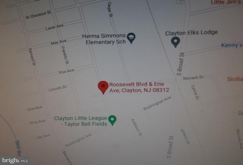 NJ Route 55 to exit 43 for Little Mill Rd. toward Franklinville/Clayton. Continue straight onto S. Broad. Turn left onto Erie Ave. Approximately 1/4 mile to end of Erie. Located at the intersection of Erie and Roosevelt on corner.