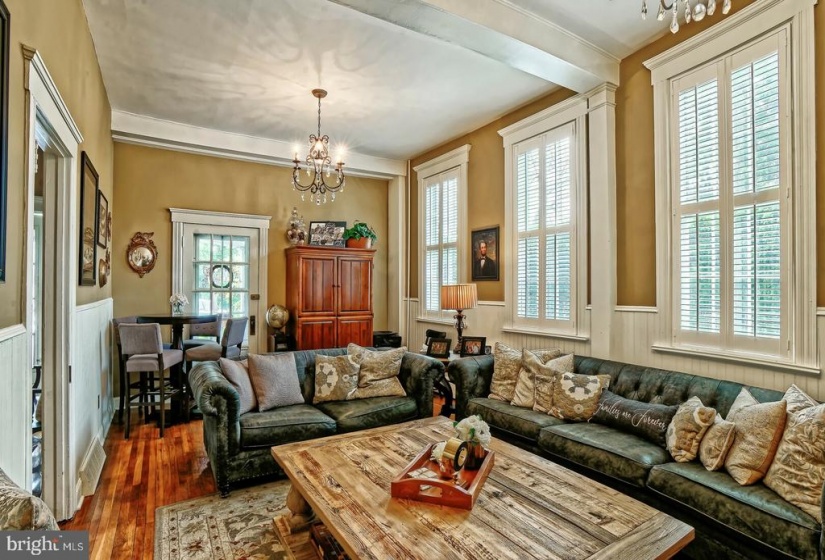 Charming Historic home and carriage house featuring spectacular front porch located in the Village of Vincentown, Southampton Township. This quaint home has the unique location of both town and lake living as it is positioned between Main Street and the renowned Mill Pond. The .86 acre is adorned with beautifully landscaped gardens, mature trees and a picturesque dock overlooking the water. On the 1st floor, the original glass front door gives way to a foyer with a coat closet and renovated powder room. The formal living room receives amazing natural light from the large bay window overlooking the front yard and is decorated with colorful flowers from the front planter boxes. The large dining room leaves plenty of room for a table seating 12 people and is embellished with built-in china cabinets and a huge window with an amazing view of the water. The kitchen contains modern improvements such as stainless steel appliances and leathered granite countertops while still maintaining historic home charm. A step down from the kitchen, enter the large back foyer which opens to 11′ ceilings and an office. Off the back foyer sits a very large family room with 11′ ceilings lined with beams and 2 dazzling chandeliers. Hardwood floors exist throughout the house. The 2nd floor opens to a spacious foyer. Two steps up leads to two sizable bedrooms with generous closets. Conveniently positioned off the upstairs foyer, a fully renovated bathroom with marble floors and countertops along with a newly renovated laundry room with brand new Speed Queen Washer/dryer. Just around the corner, privately positioned are two more sizeable bedrooms with beautiful natural light and views. The brick carriage house with it’s significant town history compliments the main house and would be the perfect In-law suite or work from home spot away from the everyday life. this home, the pride of Main Street is located directly across from the desirable Southampton Twp Schools.