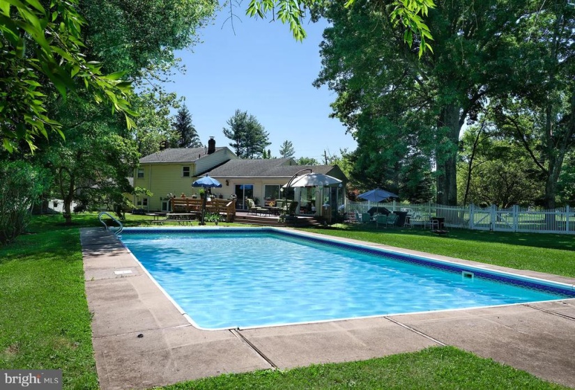 Don’t miss this one – the price is right! Offering a convenient Princeton fringe address within the Hopewell Valley school system with a gorgeous swimming pool, here’s a value-priced home that will earn sweat equity quickly with some simple cosmetic updates. Enter into the living room, which extends freely to the dining room and a sunroom and then opens out to the deck. Down a few stairs, the family room has a fireplace and is adjacent to a large bonus room, the fourth bedroom, laundry, and a full bath. Upstairs, three more bedrooms utilize a bathroom with an attractive glass enclosed shower. Hardwood floors are in several rooms. Set far off the road with plenty of parking in a circular driveway, the backyard is surrounded by fencing and features mature trees and a handy shed for garden and pool equipment With all the essential shopping and great restaurants nearby, this value-priced home offers a reasonable entrance into the Princeton area market. Don’t Wait! Soil Testing is almost complete for the New Septic!!