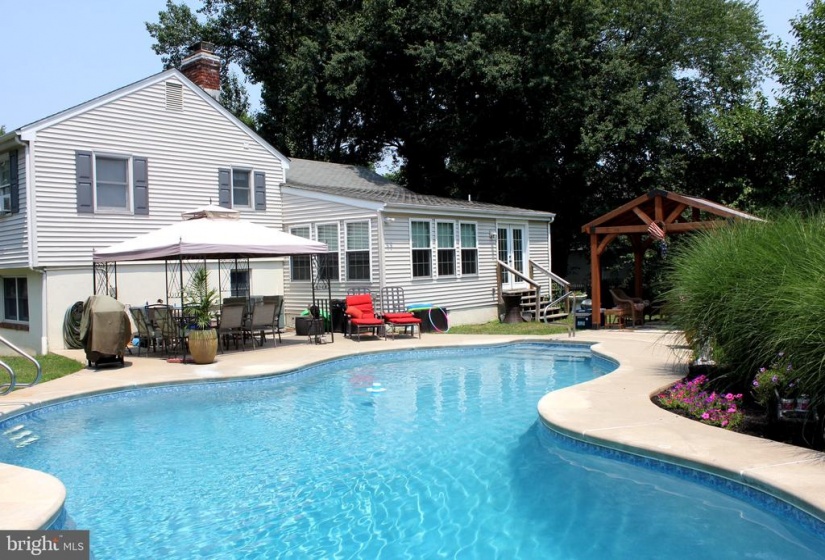 Welcome to 24 Wagon Bridge Run. Pride of ownership abounds in this wonderfully upgraded, updated and impeccably kept home. Nestled within the highly sought Moorestown community of Valley Stream, upon entry you will be struck by the elegance and interior design. Enter into a vast and beautiful living room area, open with an abundance of natural light. The open concept, hardwood flooring, custom paint and recessed lighting provide all the warmth and elegance… perfect for entertaining and large gatherings. The unique flow and design of the main living area continues with the gourmet kitchen boasting updated and plentiful cabinetry, backsplash, gas cooking, efficient counter space, a bar area and a skylight to allow for even more natural light throughout. An over head microwave and stainless under mount farm sink complete the kitchen amenities. The dining area is complemented by an elegant chandelier and designer window treatments. Adjacent on the main level is the ever inviting family room area that exudes warmth and comfort with an abundance of windows, more natural light and overlooking your fenced in back yard paradise. Vacation at home while enjoying the in ground pool, pagoda, pergola and professional landscaping. Swim, BBQ, chat amongst the stars with friends and family making everlasting memories. As if that was not enough to reward your patience waiting for the right home, the upper level features 3 exceptionally well sized bedrooms along with 2 full baths both updated with vanity, lighting, one with seamless glass and double sinks. An updated and stylish powder room is situated off the family room area and is easily accessible from the outdoor pool area. Sounds great so far but there is so much more. The lower level features an amazing luxury suite perfect for your family or even an au pair. This is not some exaggerated “in law suite” that leads to disappointment once you see it! Oh no, this suite features, a bedroom with wood burning fireplace, an ample sized living room area, a luxurious full bath that is sure to impress as well as a fully appointed and functioning kitchen with eat in area, gas cooking, microwave, dishwasher, refrigerator and large sink. Beautifully decorated as well with custom paint, chandelier, and a feeling of warmth and calm, the suite even has its very own separate entrance as well. Completing the home is a detached garage for your car and a loft for storage with access to the rear yard. Enjoy Main Street Moorestown, a short walk away as well as the all the Township has to offer as a previous Money Magazine #1 place to live in the U.S. Further take advantage of the highly ranked Moorestown schools. Close to major roads, including Route 295, the turnpike with easy access to the cities. A great opportunity to own a wonderful home.