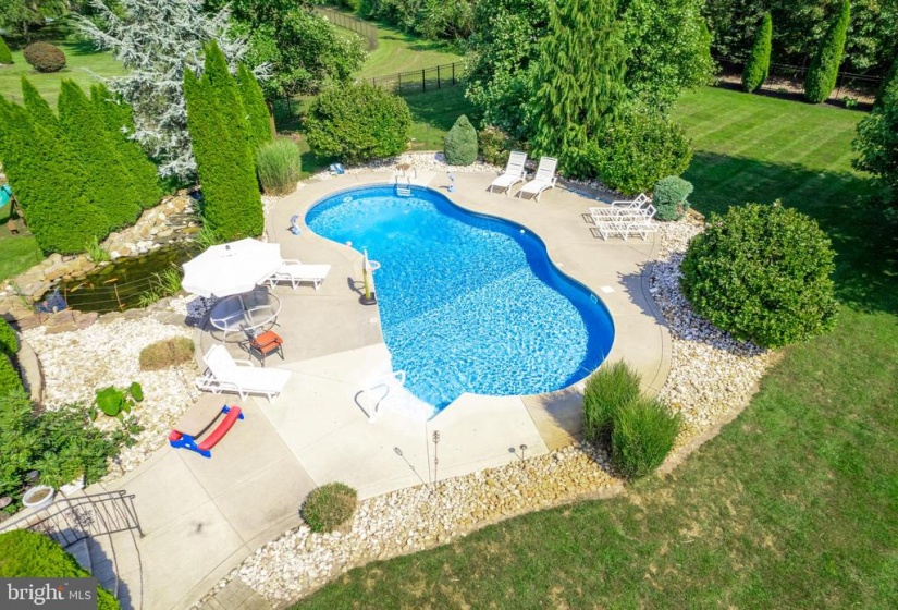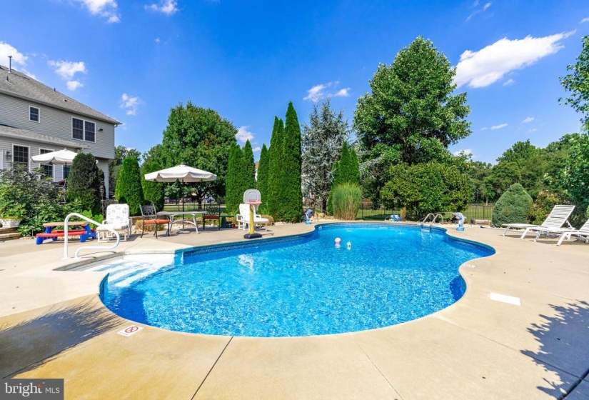 Welcome to this stunning custom built home with many upgrades and an in-ground pool! As you approach the home you are greeted by beautiful landscaping and a stamped concrete circular driveway. Inside the home there is new carpet, fresh paint, and tons of natural lighting. The ceramic floored foyer leads you to the kitchen which has a large center island, granite counters, stainless steel appliances, custom wood cabinetry, recessed lighting and morning room to enjoy your coffee. Off of the kitchen is an extended formal dining area, formal living room, and a large family room with a gas fireplace. The main level also has a convenient mudroom/laundry area which can also lead to the basement! Upstairs you will find the the primary bedroom suite with 3 closets, an attached sitting room, and master bath with soaking tub. The second bedroom is a princess suite with an attached bathroom and walk in closet! There are 2 additional bedrooms with a hall bath that sits between them. There’s also a fully finished basement that can be used as a game room area, entertainment area, home gym, another office, and so much more! The backyard is perfect for entertaining with two tiered stamped concrete patio down to the in-ground liner pool with a pond, waterfall, private landscaping, and sitting area! All of this plus a well water irrigation system, 50 year Timberland roof, 3 car garage, newer 2 zone HVAC, and tons of storage! Make your appointment to see this great home today!
