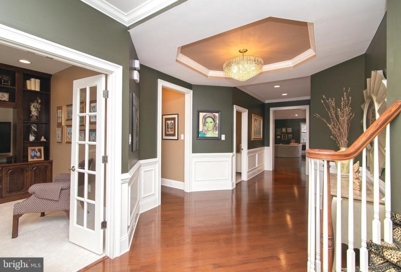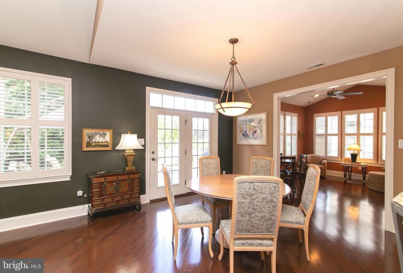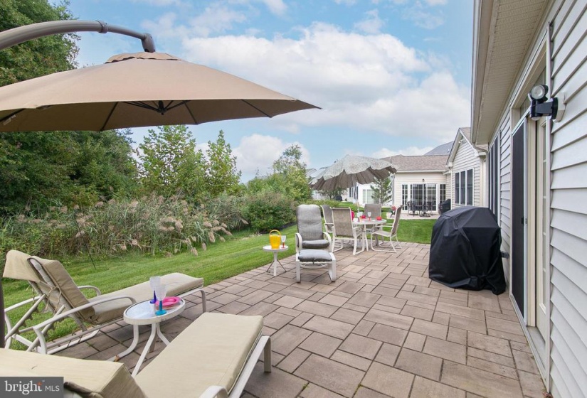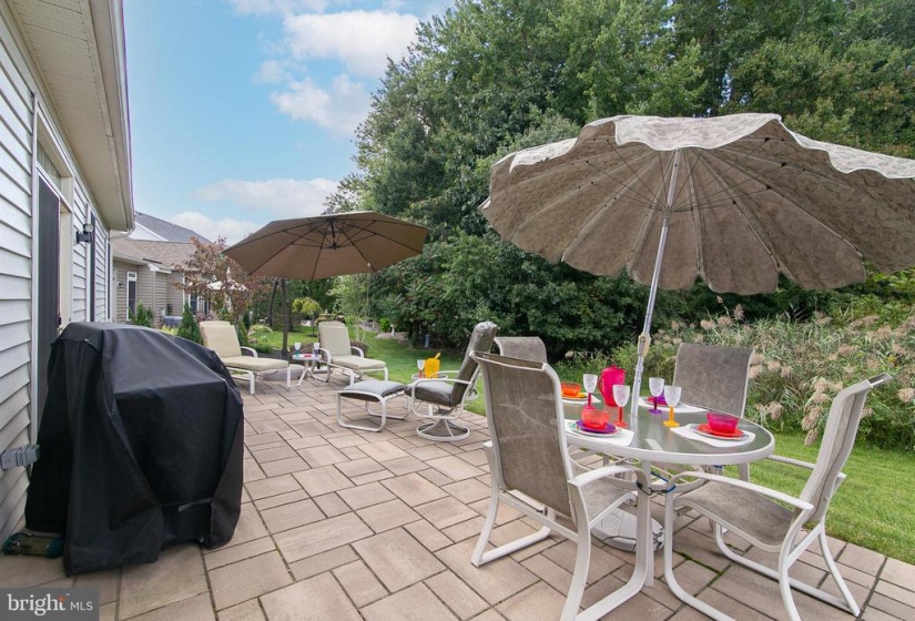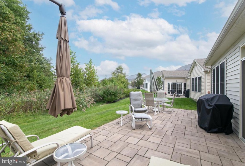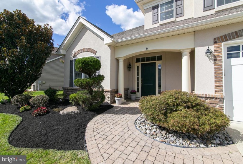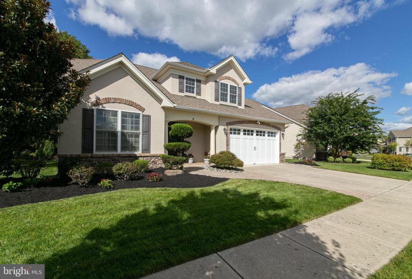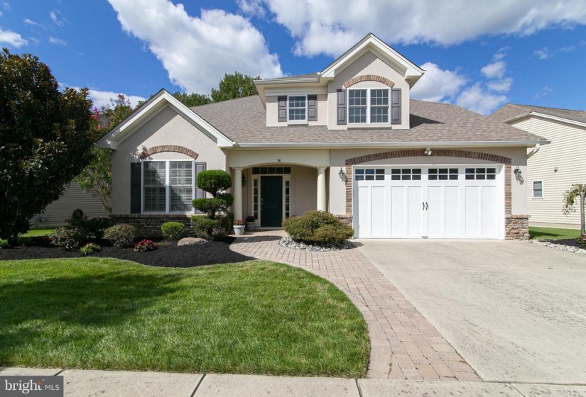 The house you have been awaiting is here! This lovely Castell style home in the popular Wyngate Active Adult Community by Bob Meyer has it all. Perfectly sized and located on a premiere home site backing to the privacy of trees, this home showcases a casual elegance and a level of craftsmanship you’ll appreciate both inside and out. Immaculately landscaped and hardscaped, a winding paver walkway guides you to the front door. Admire the exterior details of European styling from the brick soldier courses around the windows and garage to the stone work at the front, and hip style roof. Inside gleaming hardwood flooring flows through the main living areas of the house. The elegant foyer displays an octagonal tray ceiling, wainscoting and chair rail. French doors lead to a quiet study/office boasting a custom wall to ceiling built in for housing both computer and tv. The guest bath serves double duty as a powder room as well as a guest bath room with separate entrance to the spacious guest bedroom. From the foyer enter to the main body of the house with open concept dining room with bay window. A 4 ft extension to the rear of the house is evident in the spacious family room and breakfast room. The kitchen features granite countertops and Woodmode Brookhaven cabinetry with SS appliances including gas range, built in dishwasher, oven, microwave with plentiful counter space and convenient island breakfast bar. Off the breakfast room spend quality time reading, relaxing and entertaining in the sunroom with cathedral ceiling and walls of windows overlooking the pretty paver patio and lush yard with natural woods beyond. Exit through the French Doors with transom window to the patio and enjoy all 4 seasons on your private oasis. The first floor also features the primary bedroom with tray ceiling, built in wardrobe cabinetry, his and hers walk in closets, convenient vanity, and spa style primary bathroom with his/her sinks, granite countertops, and frameless shower with marble seat . A large laundry room features built in cabinetry, utility sink, washer, dryer and 2 closets for storage. Climb the foyer staircase to discover a room for storage which has been partially finished by the home owners. This immaculate, move in ready house is within walking distance to the Wyngate Clubhouse which is the hub of social and healthy activities including pickle ball, heated outdoor pool, gym, gaming rooms, craft rooms, kitchen and bar areas. It’s all waiting for you to begin the lifestyle you have been dreaming of at conveniently located Wyngate in Medford.