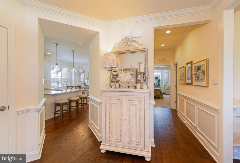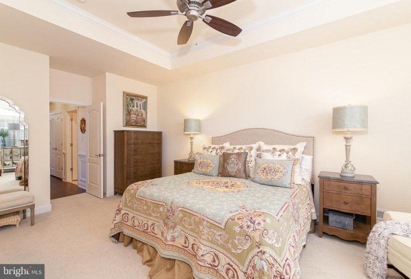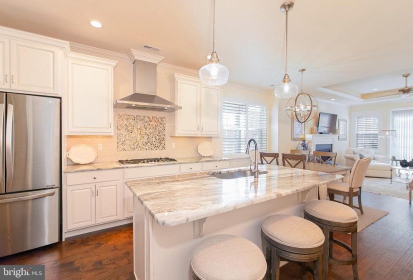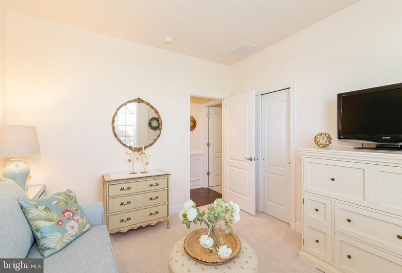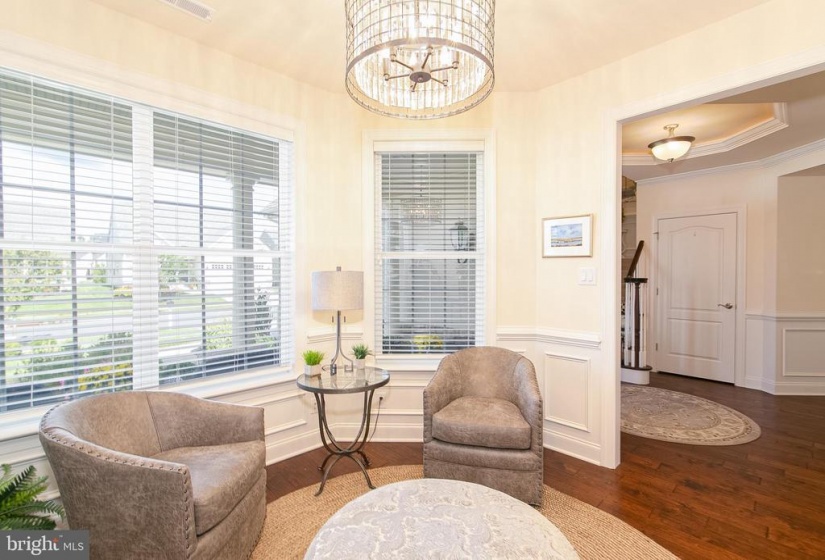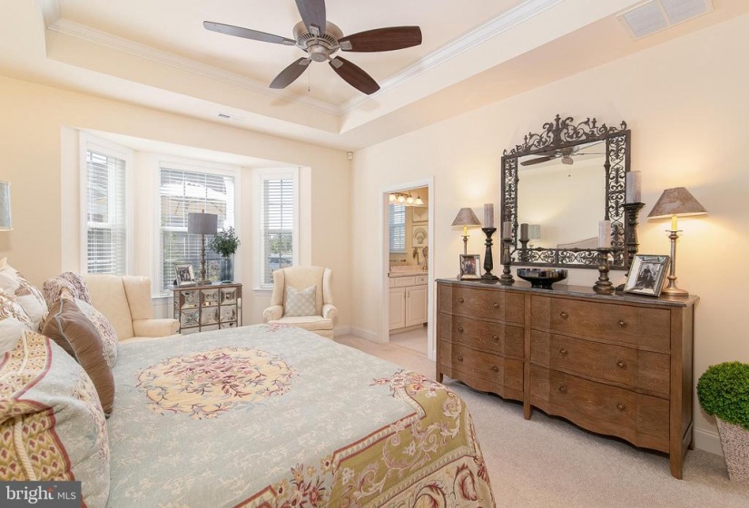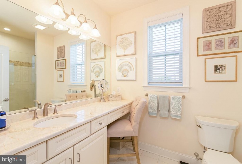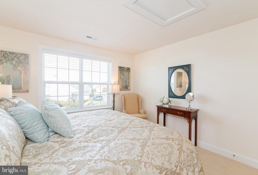 You will fall in love with this model perfect Jennings style home at Heritage Active Adult Community in Medford. This lovely house features a European styled exterior nestled on a corner home site with bountiful landscaping, outdoor lighting and a winding paver walkway welcoming you home to a charming front porch to relax and decorate seasonally for your enjoyment. Light, bright and elegantly charming this home must be seen to appreciate all the fine details, such as custom indoor lighting, window tinting, ambiance lighting in the foyer and gathering room tray ceilings, that the homeowners have included in this 3 year old home that displays as brand new. The foyer showcases an octagonal tray ceiling wainscoting and chair rail as well as beautiful wide plank hand scraped hardwood flooring that flows throughout the main areas of the house. Show off your cooking skills in the Gourmet Kitchen with 42” tall white cabinetry with soft close drawers, plentiful roll out shelves, and deep drawers, quartzite countertops, island breakfast bar, SS Bosch appliances including 5 burner gas cooktop, dishwasher, refrigerator, SS Zephyr exhaust hood, exquisite tile backsplash, under cabinet lighting and a convenient coffee/wine bar with wine fridge, for entertaining family and friends. Unwind or easily entertain in this open concept style house with spacious dining area flowing into the gathering room, with cozy gas fireplace, tray ceiling, An 8 ft high sliding door guides you from indoors to out to enjoy the extended patio and landscape at the exterior rear yard. This home features a 2 ft extension to the original design which is evident in the gathering room as well as the primary bedroom and the walk in closet. Off the foyer, a private study overlooks the pretty views from the front and side yard. There are 2 bedrooms and 2 baths on the first floor including the primary bedroom with bay window at the rear, tray ceiling, built in cabinetry in the walk in closet. Unwind in the spa style bathroom, with stylish vanity, granite countertops, large frameless shower with seat and lovely tile backsplash with a mother of pearl border, large tile floor with temperature control heated flooring. The two car garage enters into the laundry room with washer/dryer, additional cabinets, utility sink and deep storage closet. An attractive hardwood staircase guides you to a private loft area, as well as a spacious 3rd bedroom, full bath and storage room. This 2nd floor is perfect for hosting overnight guests or providing a private living quarters for a family member. The Heritage neighborhood offers a community clubhouse with kitchen, gaming rooms, gym, pickle ball outdoor pool and spa. Enjoy the social life and relaxed lifestyle in a quiet community that is within walking distance to the Acme supermarket complex with banking, cleaners, wine store, restaurants and more. Hurry in to experience this jewel of a home that is a rare find in Active Adult living.