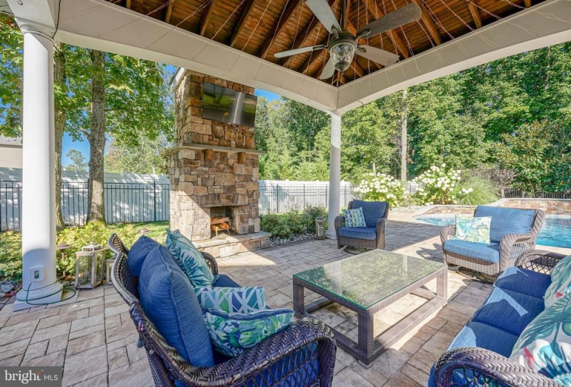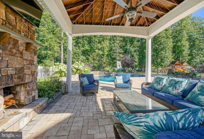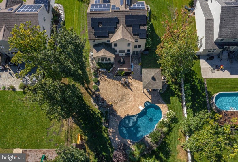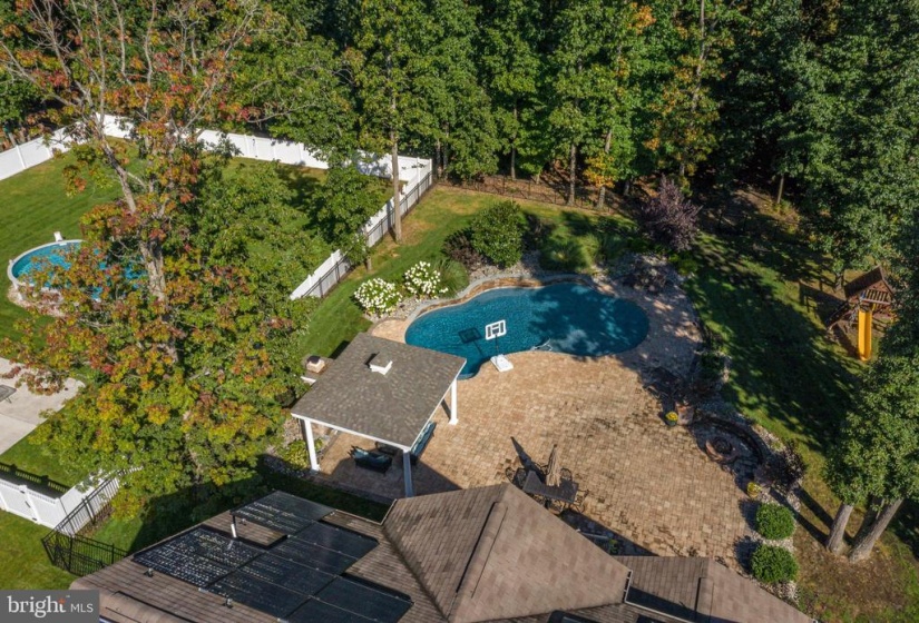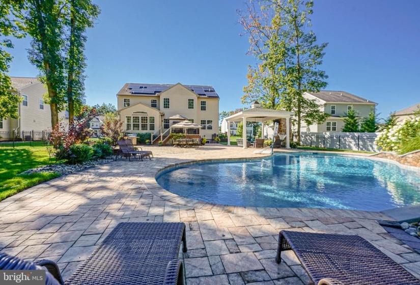 Welcome Home to Willow Woods! This stunning home features upgrades inside and out with features sure to wow you! Pull up out front and you are welcomed by the long, double-width driveway large enough to fit 4-6 cars. Maintenance-free vinyl siding is complemented by stone accents and tasteful hardscaping and landscaping surround the property. SOLAR PANELS keep the electric bills low and well water for irrigation keeps everything lush and green at minimal cost! Step inside and you are greeted with a spacious foyer. To your left is the formal living room and to your right is the spacious dining room. Through the dining room, a grand kitchen boasts ample 42″ cream cabinetry graced with granite counters and complemented by stone backsplash, top-of-the-line appliances, and a massive island. The large copper sink, under cabinet lighting, and convenient pot-filler are great additions to this stunning space. Counter seating divides the space from the kitchen into the breakfast room with vaulted ceilings. The family room provides a dramatic floor to ceiling stone front gas fireplace. This is the perfect spot to lounge by the fire in the chilly winter months. Windows also reaching up two stories high letting in tons of natural lighting as well as a stunning light fixture complete this awesome room! Just beyond the family room, a bonus space on the first floor features french door entry and could be a guest bedroom, office, or playroom! Endless opportunities here! A half bathroom and garage access complete the main level. Upstairs, on the second floor, you will discover four very generously sized bedrooms. The primary bedroom offers a private bathroom with tile flooring, separate vanity areas, a large soaker tub, huge updated shower, and fabulous closet space. Rounding out the second floor are three more bedrooms, an additional full bath, and a convenient upstairs laundry room with folding space and storage galore! Need more convincing as to why this house is for you? The finished basement is a perfect entertaining spot. The focal room is the media center with projection and surround sound. Plenty of space in the basement for other zones – think workout space or play area for the kids! An additional private room is perfect for guests and a full bathroom is located on this level as well! Outback, step onto the large deck and you’re overlooking what could be your own backyard oasis! Pavers begin at the foot of the deck and travel throughout the yard beneath a massive gazebo with electricity, ceiling fan, fireplace, and more! They also continue around the in-ground heater salt-water pool. Just imagine relaxing here! When you do decide to leave, this home is conveniently located nearby local shopping and dining with easy access to major roadways for the commuter. You won’t regret putting this home on your list!