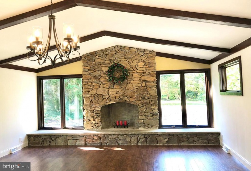If you’re looking for a never-ending, sprawling rancher, then you must put this one on your viewing list! 100% VA/USDA financing may be available! This beautifully rehabbed home offers 3 generous bedrooms, 2 full baths, with one located in the primary bedroom, and a massive 1.6 acre private lot! As you pull up, you are greeted with a circular driveway. This leads you to a massive driveway that allows plenty of parking for guests. There is a walkway that leads you up to a deck at the front door. This is a great spot to sit and watch the many deer that frequent this property. As you enter the foyer, you will be blown away by how expansive this home really is! The main living areas have been redone with beautiful laminate floors! The massive foyer can also be used as a living room. There is a bonus room straight ahead that could be an office, craft room, media room…etc. To the left, you have the formal dining area which is also open to the beautiful kitchen. The kitchen has beautiful granite counters, new shaker style cabinets, a stainless appliance package, and new tile floor. There is new paint throughout the entire home, as well as recessed lighting. This home is just begging to be entertained in! As you continue through the home, there is a den that is as large as a banquet hall, with cathedral ceilings and beautiful exposed beams, and a large fireplace! There are plenty of windows to see the amazing views on this property! All 3 bedrooms have brand new carpet and plenty of closet space. The primary bedroom offers plenty of room for king size furniture. The primary bath has been redone with a new tile floor, new stall shower, new toilet, vanity and fixtures. Downstairs there is a large and clean basement for plenty of extra storage. The den has sliders that lead to the back yard which has endless possibilities! Maybe a pool or a pole barn? That’s for you to decide! For years of worry free maintenance, there is a new furnace, new roof, new siding and a new septic. This one really is special! Be sure to see it today! Fireplace is being conveyed as-is.
