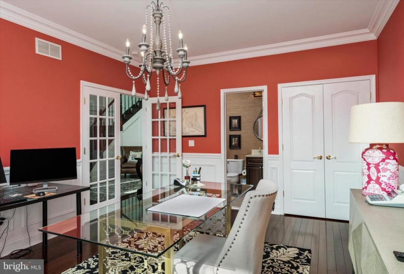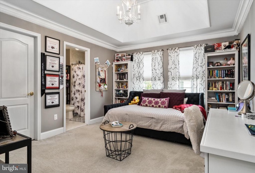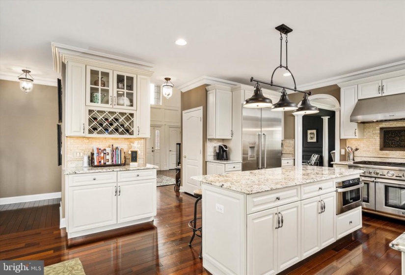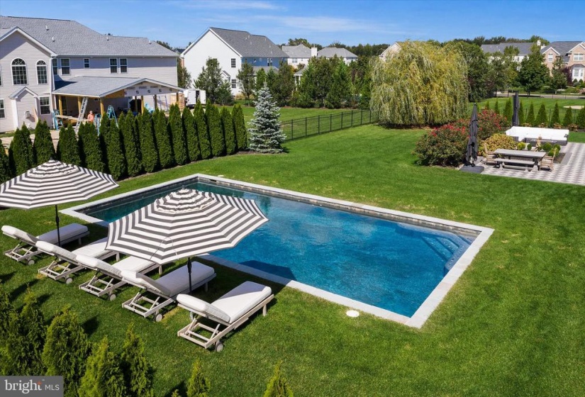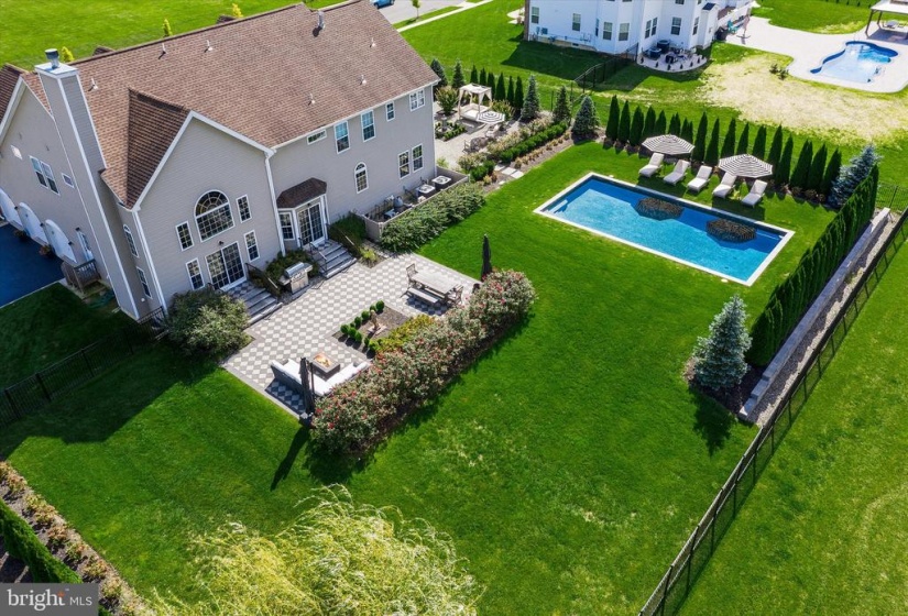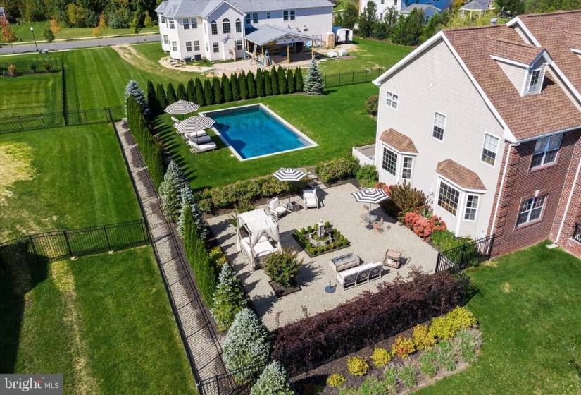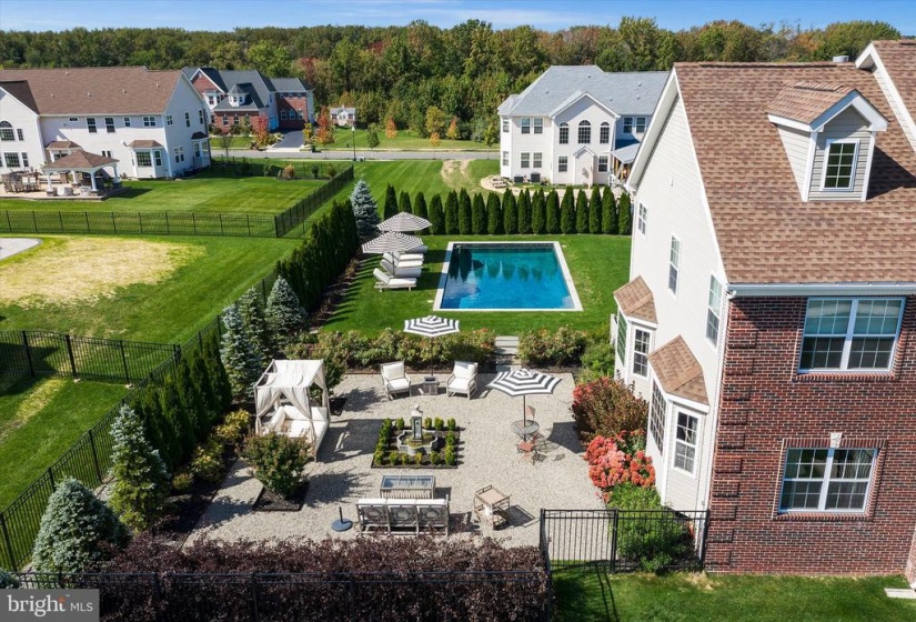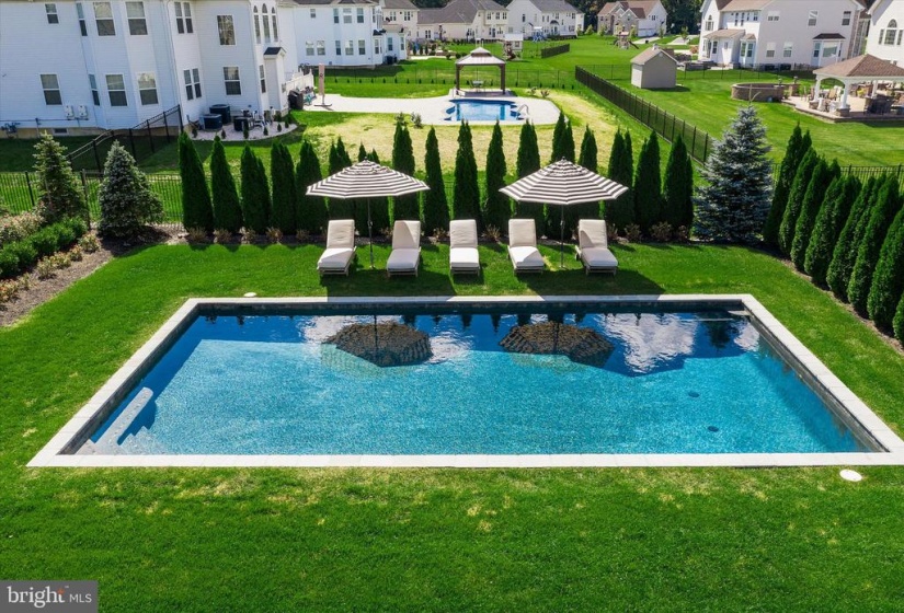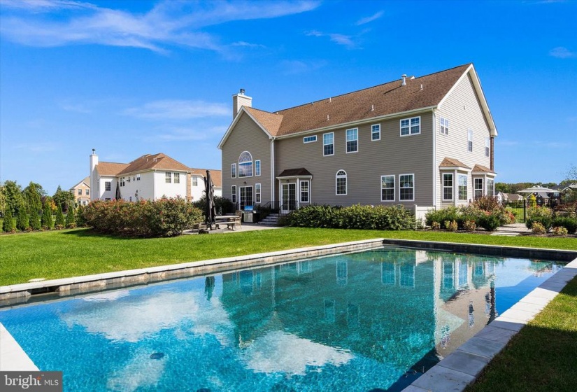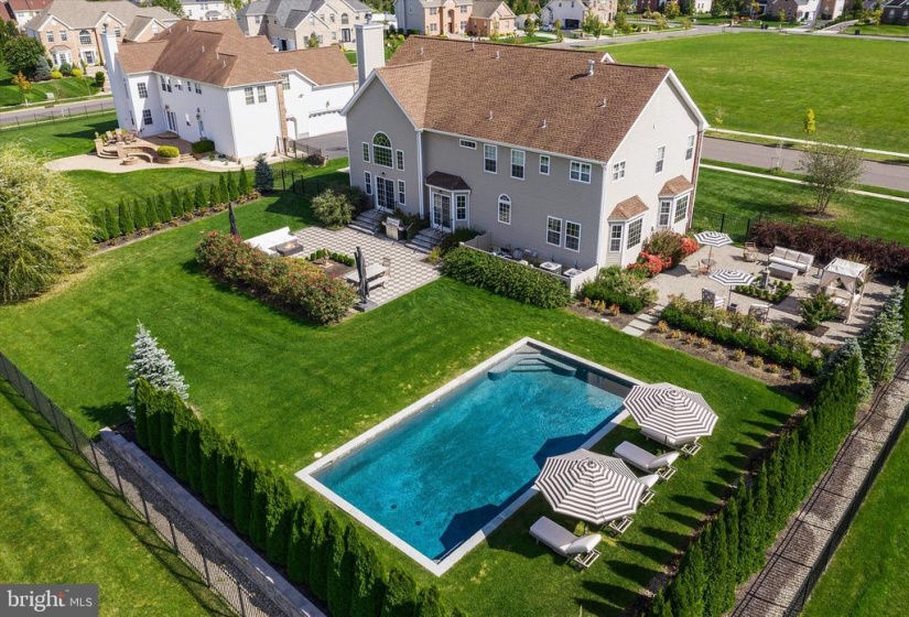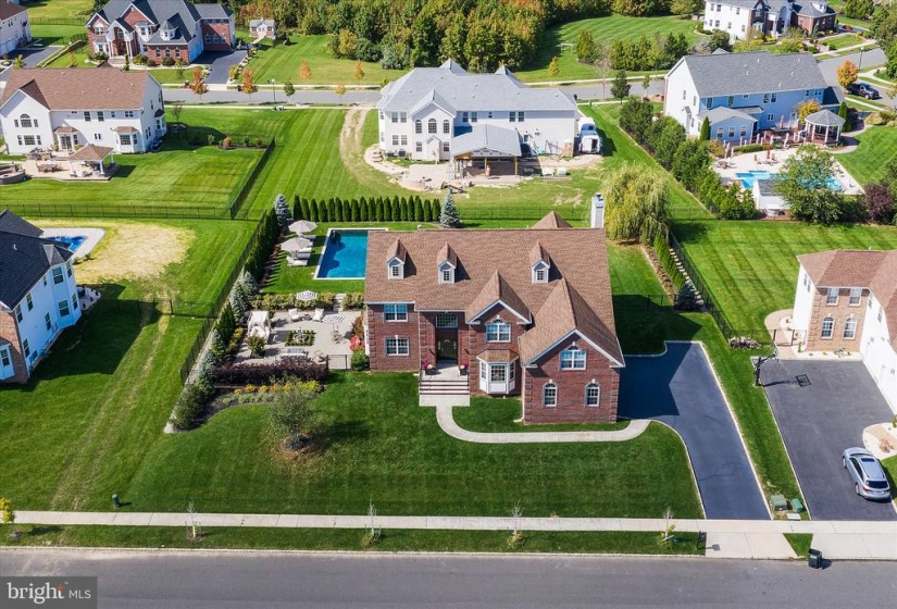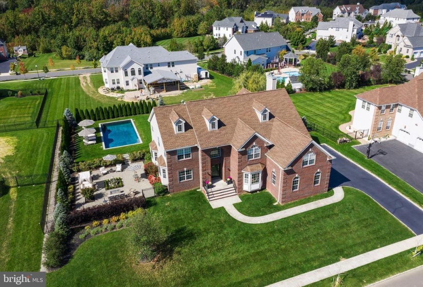 Welcome to this stately home in desirable Cubberly Meadows. This brick beauty features 5 bedrooms & 5 1/2 bathrooms. Prepare to be awed by the gorgeous custom moldings and Brazilian walnut flooring featured throughout the first floor. Formal living room opens to the dining room with two bay windows and spectacular ceiling moldings. Gourmet kitchen with 8ft island, granite countertops, tile backsplash, top of the line Thermador commercial grade appliances and walk-in pantry. Family room with cathedral ceilings and wood burning fireplace for those cool winter nights ahead. Large first floor bedroom/home office with closet and full bathroom. Completing the first floor is an additional half bathroom, laundry room with closet, sink and exterior access and a generous three-car garage. You’ll find floor to ceiling recessed wainscoting from the foyer leading you upstairs and throughout the upper hallway. Each bedroom has its own ensuite full bathroom and walk-in closet & each features moldings and has a unique bonus feature. One bedroom boasts a vaulted ceiling. Another bedroom has two closets and the other bedroom has a unique storage room that you can enter through a “hidden” door in the molding. The primary bedroom includes a sitting area, gas fireplace and an enormous double walk-in closet with vanity. The primary bathroom is simply stunning with Carrera marble tile throughout the bathtub, flooring, shower and separate vanities. Step out into the backyard oasis of tranquility with courtyards and paver patio all surrounding a gunite saltwater pool that feels like you’re in a home in the Hamptons! This home is situated across from 6 acres of open space on a prime lot in the neighborhood and also features dual zone HVAC, completely fenced in yard with black aluminum fencing, natural gas line for outdoor grilling and backyard sprinkler system. Don’t miss this incredible opportunity!