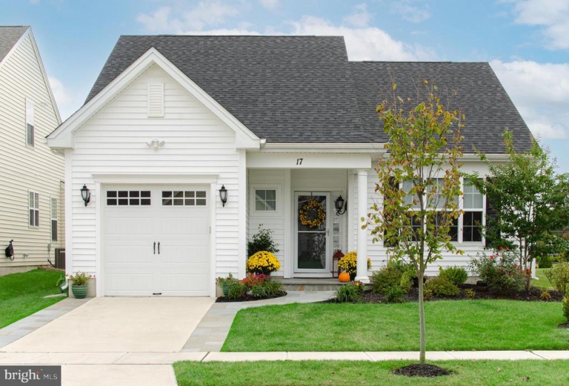 This Branin ranch style home at Bob Meyer’s Active Adult Community Heritage at Medford, is practically brand new! Homeowner has recently added a blue stone walkway that guides you to the pretty front porch , perfect for seasonal decorations or sitting out to greet neighbors and guests. This light and airy open concept floor plan provides 9 ft high ceilings, spacious rooms, plenty of closet space, windows and natural light. The foyer features a double coat closet, hardwood flooring. Prep and cook meals for family and friends in this efficient kitchen which displays white cabinetry, light wide tile floors and breakfast bar. There is a generous dining room for family and friend gatherings. The dining area is open to the gathering room with sliding glass door guiding you to a large rear yard with patio. There are 2 bedrooms and 2 baths. The primary bedroom accommodates a king size bed and boasts his/her closets. There is a convenient laundry room with washer/dryer and the high ceiling garage provides additional storage as well as a pull down stair to upstairs storage/hvac. The popular Heritage Community is convenient to all major roads, and has sidewalk walking path to the Acme shopping center complex. Enjoy a renewed social life at the Community Clubhouse with pickle ball, outdoor pool and spa, gym, dining areas, gaming room and more. You’ll love your new easy lifestyle in a wonderful community that offers quiet enjoyment, social life, and shopping convenience.