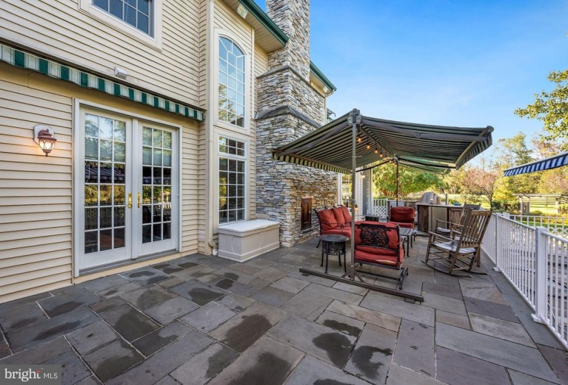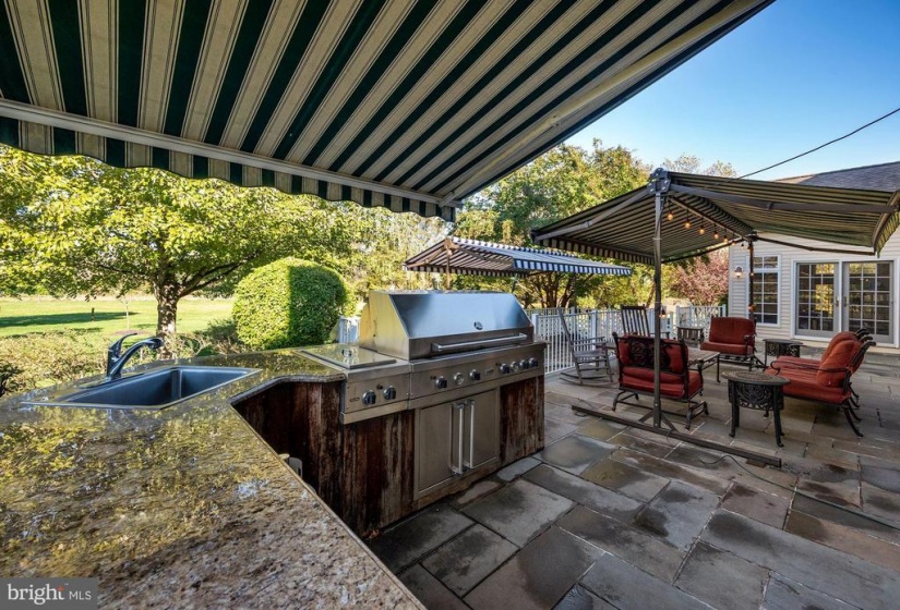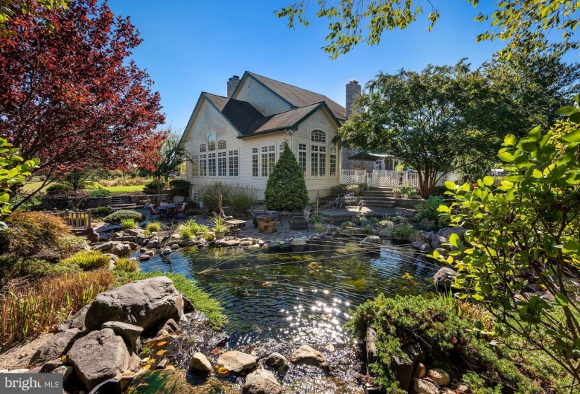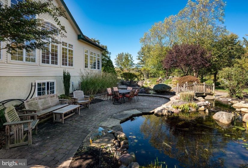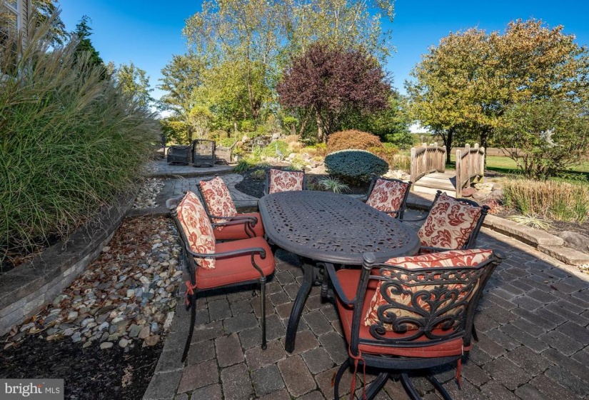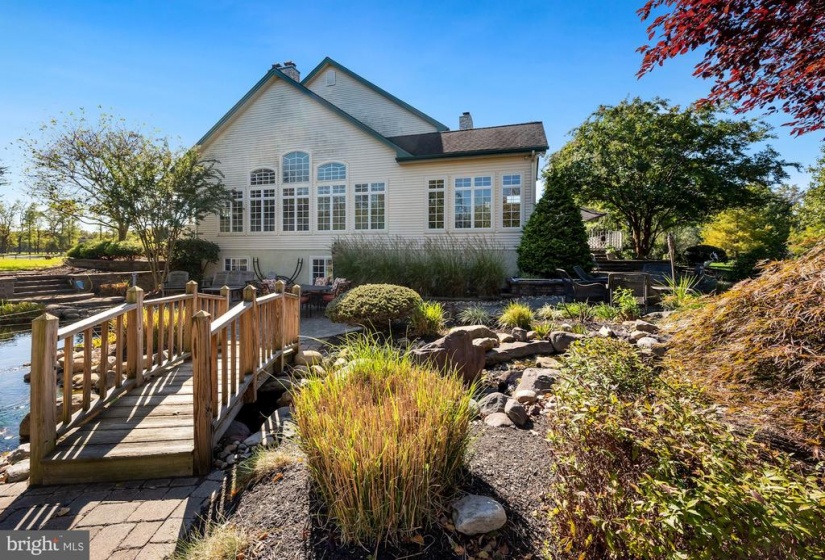 : Extensive hardscape, Exterior Lighting, Bbq Grill, Awning(s), Gutter System, Underground Lawn Sprinkler, Hot Tub, Water Falls