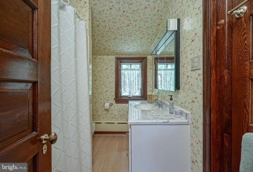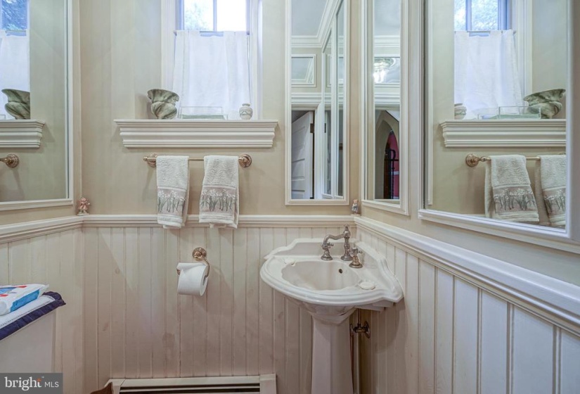 Very rare to the market this 1929 Tudor Gem. Expertly maintained by the present owner for over 45 years. The property is being sold in As-Is condition. This 3 bed 2-1/2 bath stunner is estimated to have a replacement value of approximately two million dollars. Attention to detail astounding. Please take the virtual tour (click on the movie camera) so you can virtually walk through the home inside and outside to see every nook and cranny. nnThere are so many special things to be found throughout this enchanting home full of character. Beautiful 700 year old tiled floor in the foyer that was brought in from a church in France that was detroyed by fire. Hand forged railings by a black smith grace the stairways. Formal beamed ceiling living room with paneled walls washed in white. Bookcases & window seat flank the wood burning brick fireplace with wood mantle and surround. Intricate stained glassed windows adorn the front and side windows. Hardwood floors throughout the formal living and dining rooms. Step into the office through French doors off the living room with a flagstone floor and three walls of windows overlooking the front yard. Step down into the sunroom from the formal living and dining rooms. Three walls of windows bring in plenty of light. The sunroom features built in bookshelves and cabinetry, flagstone floor continues and a double door that opens up to the terrace. In the center of the house is the formal dining room which features those gleaming hardwood floors, magnificent medallioned brass chandelier, a true focal point, crown molding and chair rail. Gourmet kitchen dressed in all white with breakfast room and sliding glass door out to the terrace. This kitchen was designed by a cook with plenty of space for cooking and entertaining! White tile floor, coordinating white cabinetry, white Corian countertops. Industrial SS hood overtop a six burner gas stove and griddle/grill. Double sink. Huge walk in pantry. Full appliance package including subzero refrigerator, Miele dishwasher, Dacor double ovens and microwave. The breakfast room complete with a tiffany style light fixture, built in bookshelves, cabinetry and desk (for cookbooks and creating dinner parties) Step down to laundry room and covered side door entry to the garage and driveway. The laundry room complete with a laundry tub, cabinetry, washer, dryer, pegs and shelving for all the latest coats and hats. Ascend to the second floor to find the Master Bedroom suite with hardwood floors, designer floral wall paper, lighted walk in closet and French door to the balcony overlooking the front yard. Master Bathroom with walk in tumble marble steam shower, custom single sink vanity and wood style floor. Hardwood floors continue in the second bedroom that features an enormous lighted walk in closet with pocket door. Cozy carpeted third bedroom at the back of the house with two generous closets. Full basement almost the footprint of the house. Finished entertaining family room area with built in bookshelves and cabinetry. The wet bar built in 1933 features blue depression glass a one of a kind. Ample unfinished storage and workshop areas which also house the mechanicals and a Teekorator. (look that one up on google ) Meander down a flagstone path to the private outdoor terrace with awning and water fountain.. open from the sunroom and the kitchen. Sprinkler fed specimen plantings can be found throughout the yard. Koi pond with babbling water feature. Two car back entry garage and gardener’s shed. Multi-zone hot water baseboard and radiator heat. Almost every room has their own thermostat. Heating system replaced in 2021. Central air conditioning system with its very own chiller. Merchantville is centrally located and close to all major roads north and south. One of Jersey’s darling old towns. The community center is located at the end of the street. #lovewhereulive