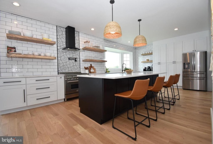 Beautifully updated, waterfront beauty with spectacular lake views. Grande 2 story foyer with new 5 inch, white oak plank floors throughout the 1st and 2nd floors and front and back staircases. New 5.5″ molding, light fixtures, door and cabinet hardware and freshly painted throughout. Home office with French doors. Formal dining room. GRAND-New center island, gourmet eat-in kitchen with quartz countertops, subway tile backsplash, stainless steel appliance package, full wall pantry storage and island with additional storage. 6 burner stove with pot filler and vent hood to outside. Recessed & pendant lighting. Pull out shelves including two spice rack cabinets. Light oak display shelves. White shaker cabinets with black iron pulls. Contrasting black island cabinets with built in microwave. Farmhouse sink with black touchless gooseneck faucet overlooking bay window with awesome lake views. Sliding door to composite style deck where you can enjoy morning sunrises. Family room with vaulted ceiling, gas fireplace, remote ceiling fan and back staircase with closet storage. Laundry room off kitchen includes newer washer & dryer. Master suite with cathedral ceiling, remote fan, 2 walk in closets and a linen closet and sitting room, also with vaulted ceiling. Main bath with whirlpool tub, stall shower and dual vanities with separate sinks. All bedrooms with large closets and remote fans. Hall bath with double vanity, newly tiled floor and tub wall. Full basement with 2 zone heat and ac, direct vent hot water heater and sump pump. Full size windows for loads of natural light. Sliding glass door to rear covered patio, fenced yard, zoned sprinkler system and lake. 2 car garage with opener. Includes 1 year 2-10 warranty.